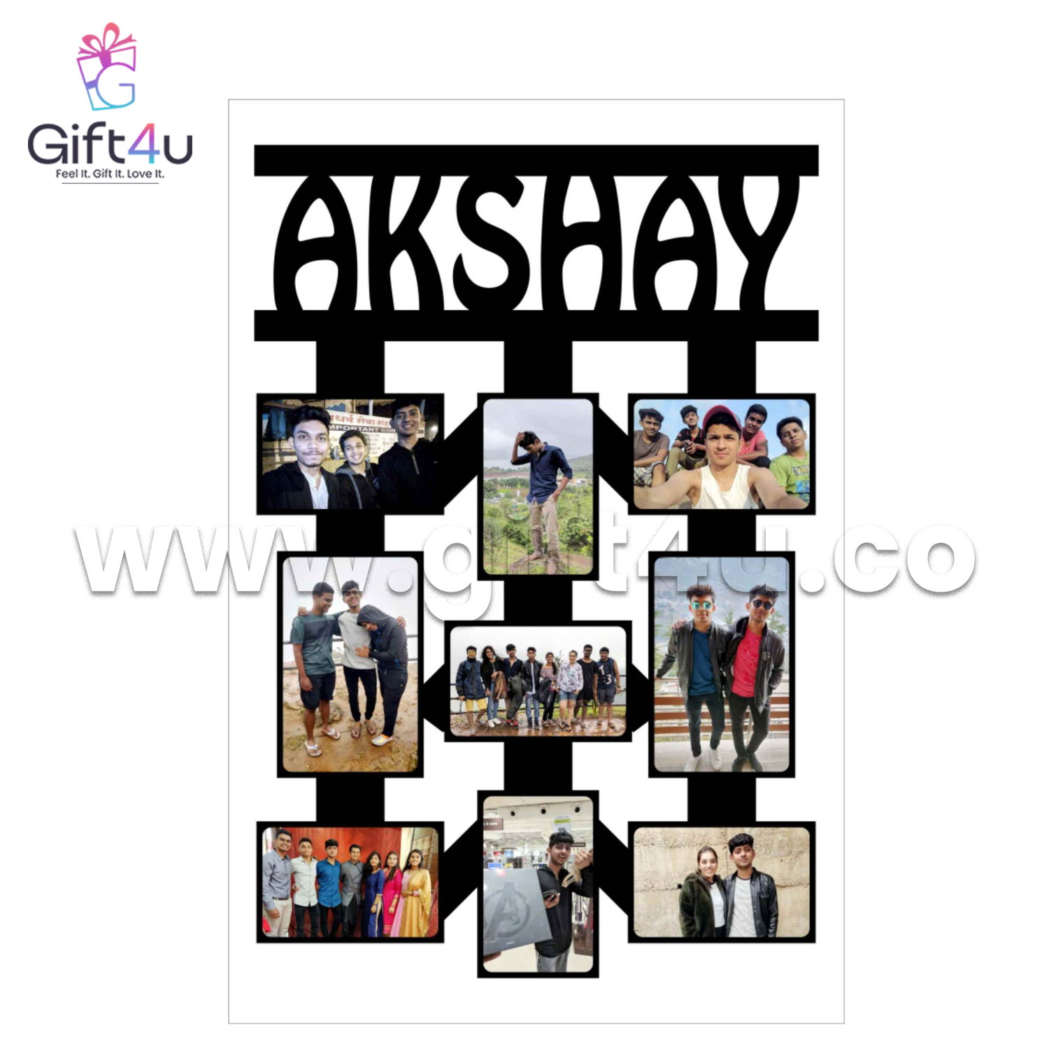 Capture unforgettable moments with this sleek and tall MDF photo frame, personalized with 1 name and 9 of your best photos. Its clean, vertical layout and bold name cutout at the top make it perfect for bedroom walls, study corners, or as a heartwarming gift.
