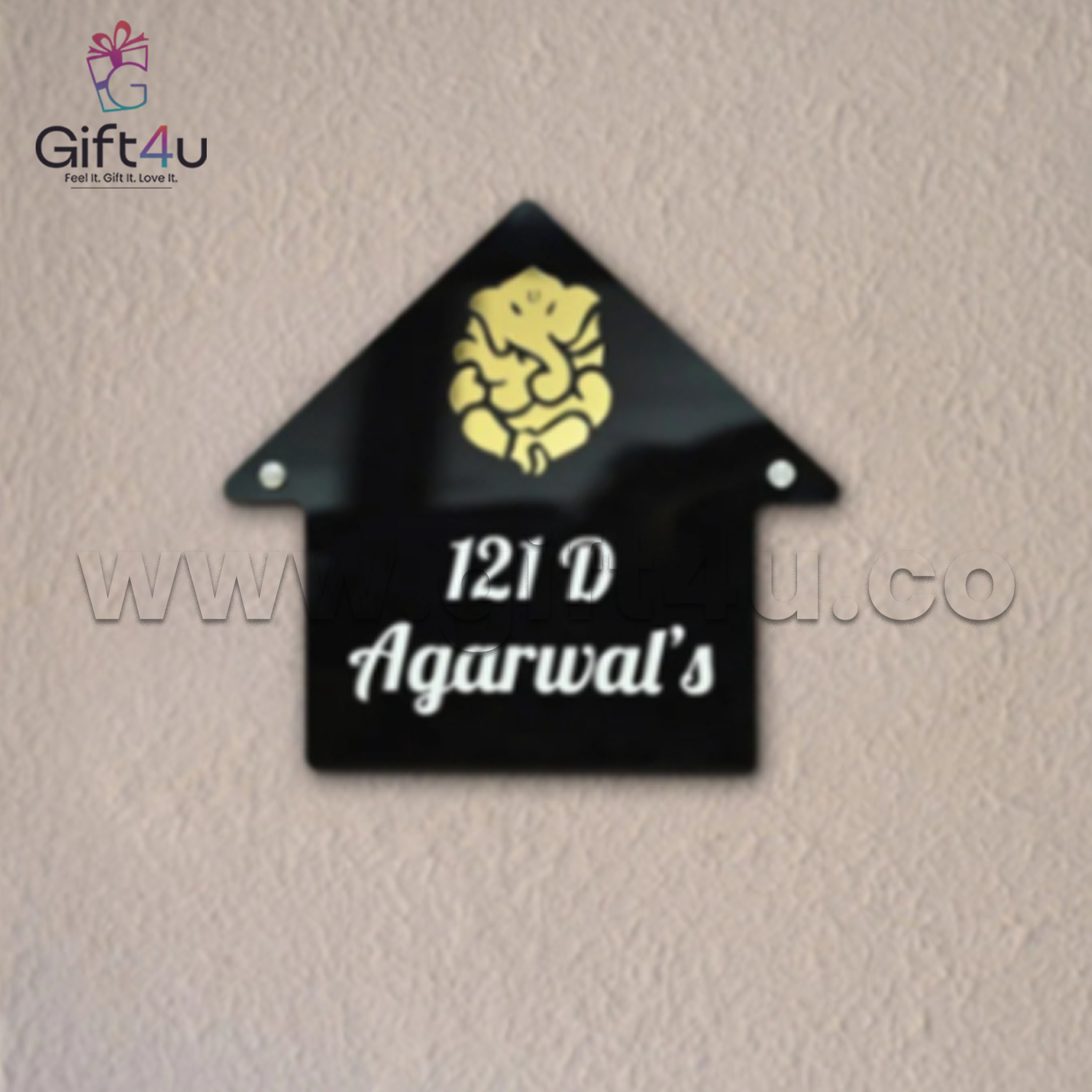 Customisation: Change symbol (e.g. Ganesha, Om, Floral, etc.) + Name + Flat/House Number