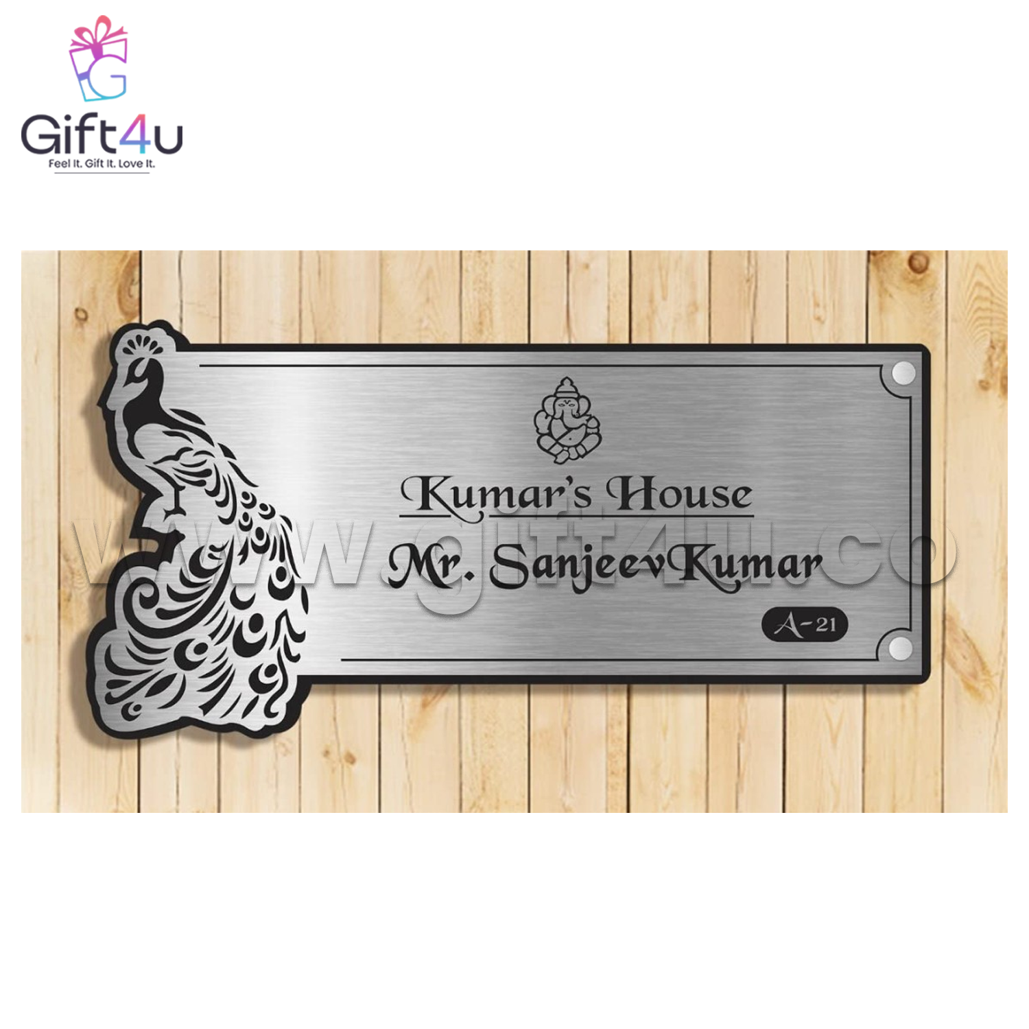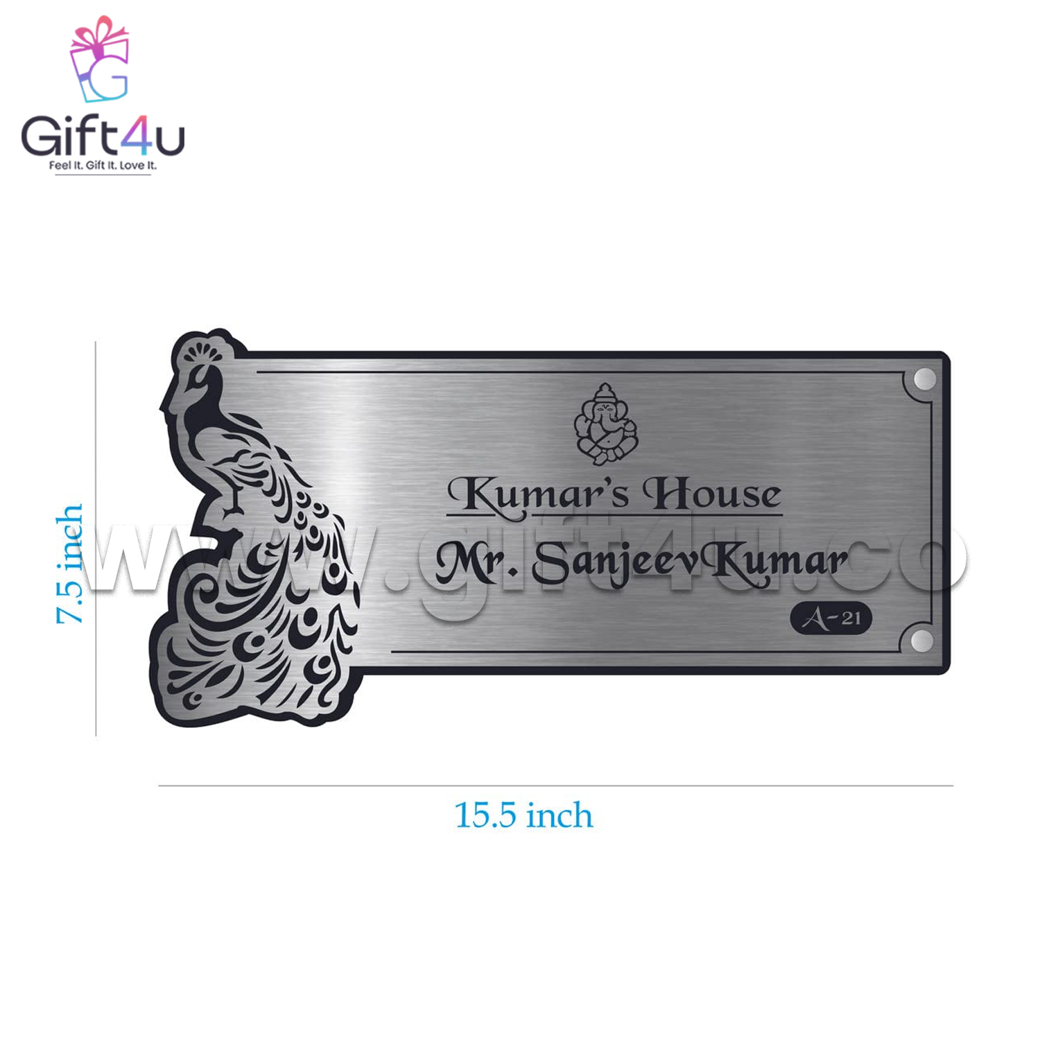 Welcome timeless elegance into your home with our Peacock Elegance Name Plate. Made with a perfect blend of durable MDF and premium acrylic, this 7.5 x 15-inch nameplate features a beautifully crafted peacock motif and classic engraved lettering. Its sleek metallic finish adds a modern charm while the traditional design gives it a cultural richness—perfect for homes that blend heritage with style.