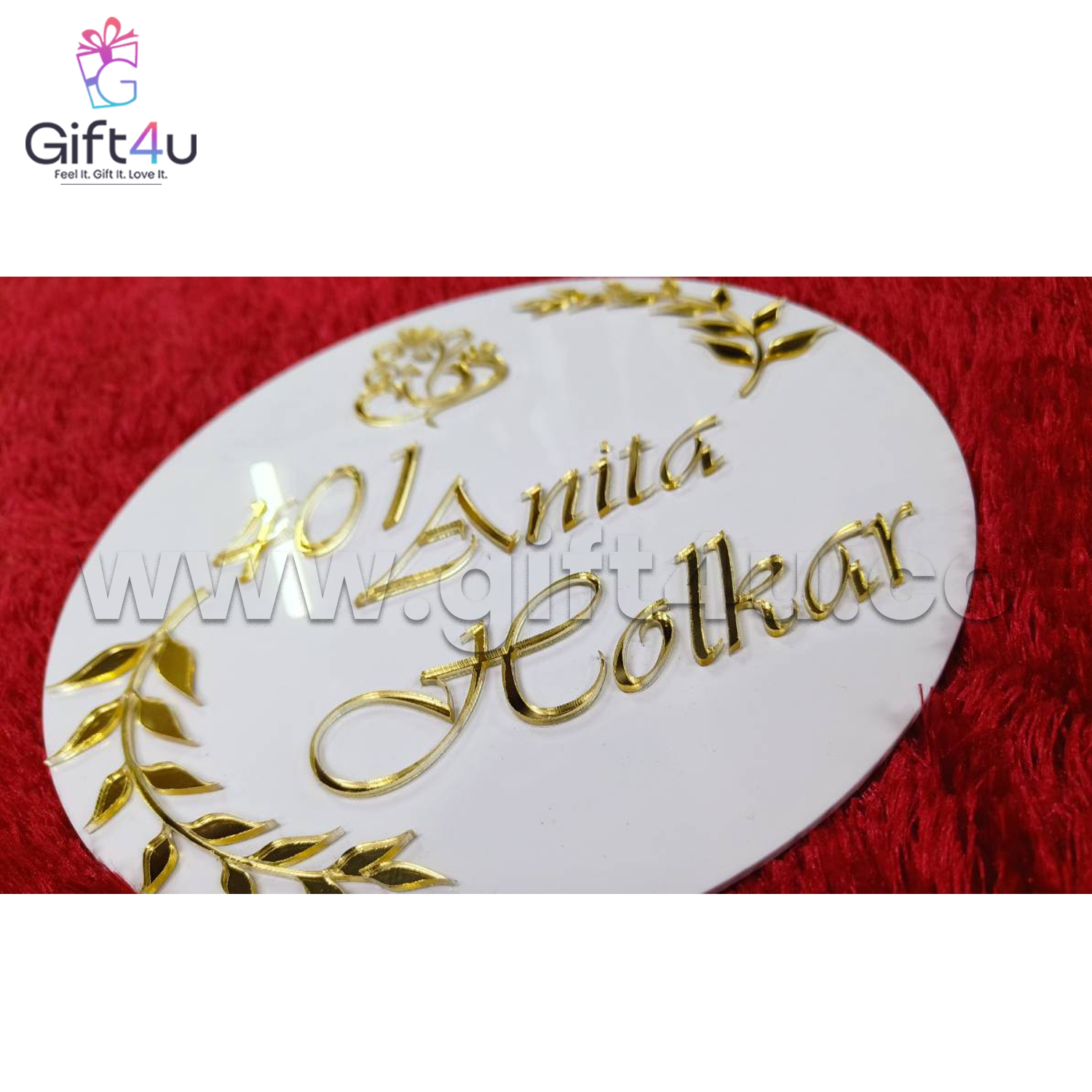 G4U NP4 DivineGlow – Round Gold Acrylic Name Plate
