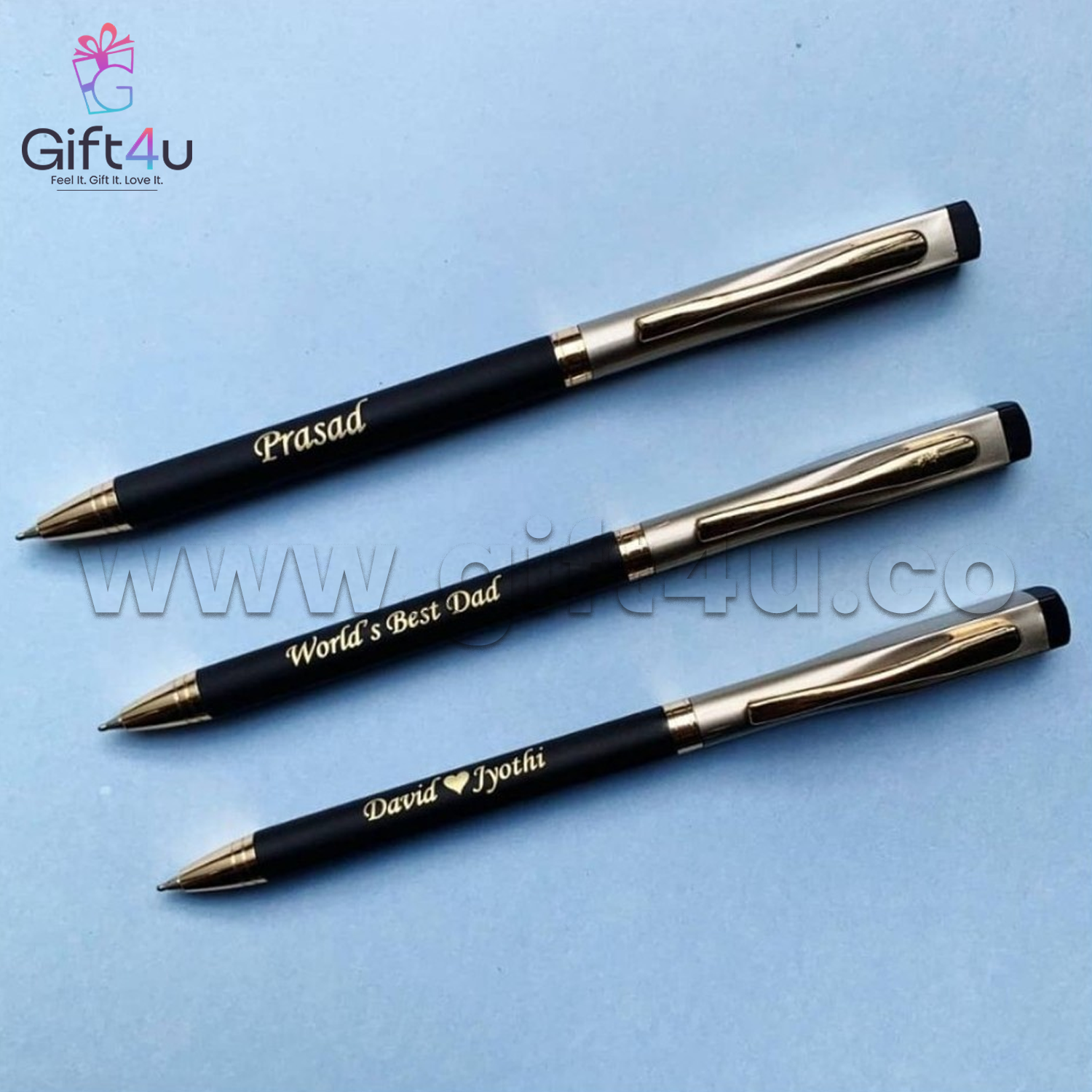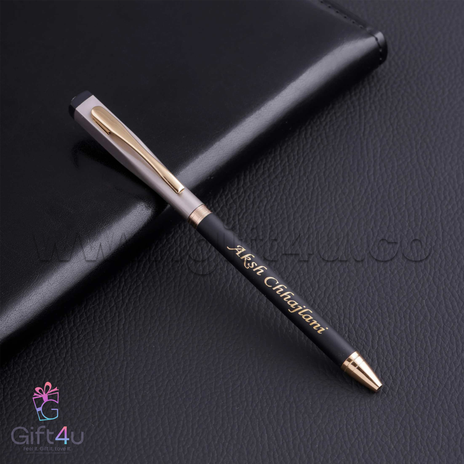 The GoldMark Pen features a classic black and golden finish, smooth blue ink, and the option to engrave your name — combining elegance with individuality. Designed for those who appreciate premium writing tools with a personal touch.