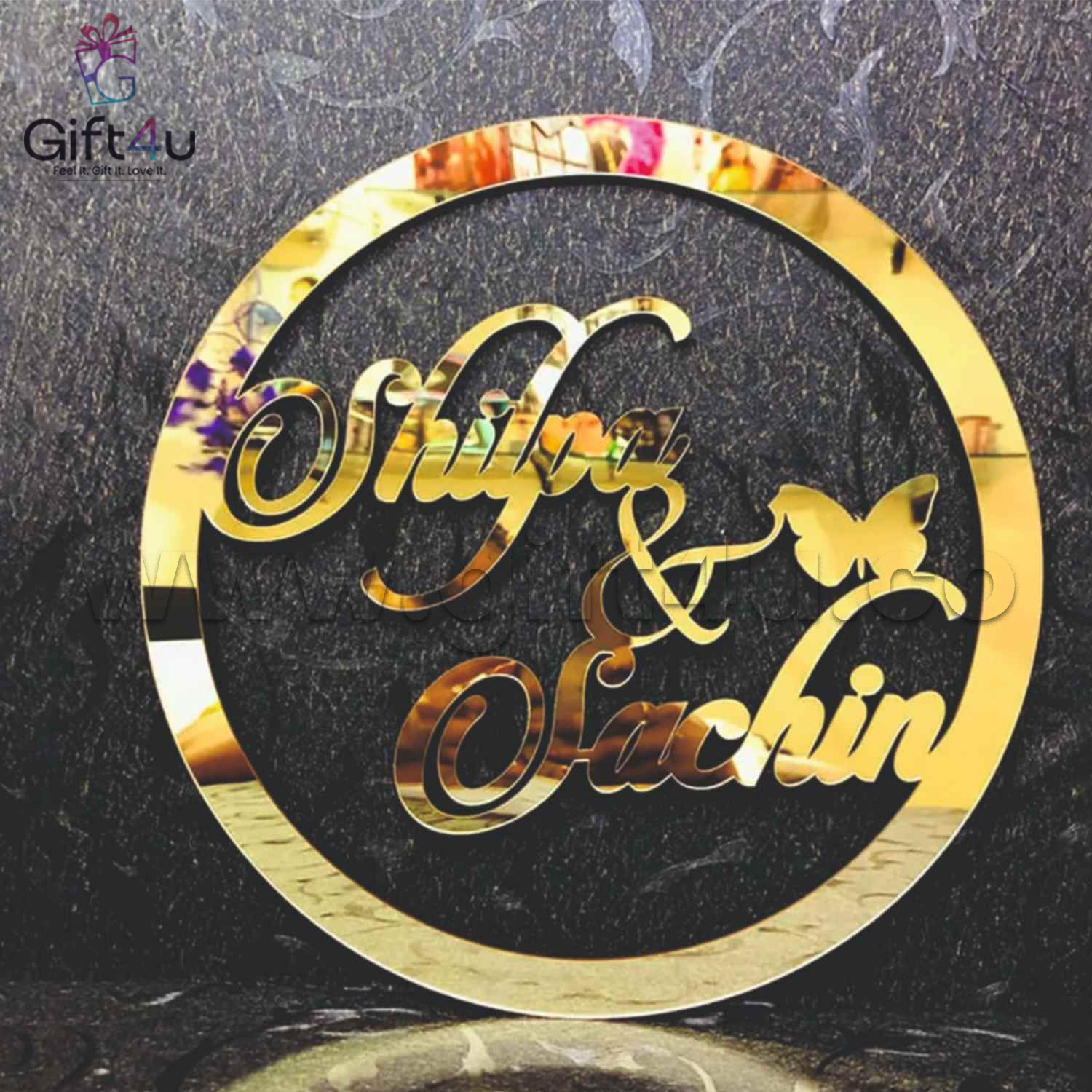 Add a touch of elegance to your home or special event with this stunning Personalized Golden Acrylic Name Plate. Crafted from high-quality acrylic with a reflective golden finish, this 15x15 inch name plate beautifully showcases your chosen names in a graceful, script-style font.