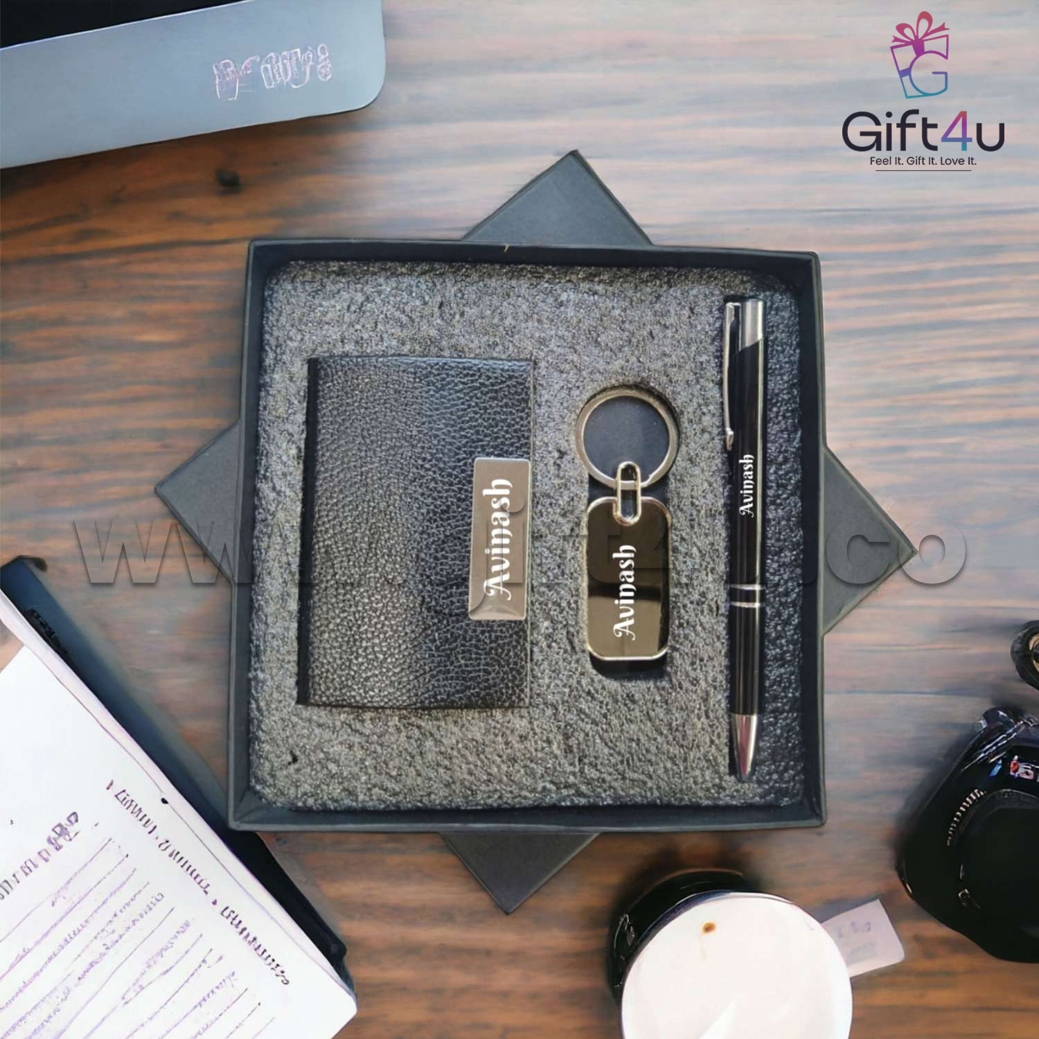Step into every meeting with confidence and style. The Executive Edge combo delivers sleek sophistication through a premium pen, a stylish keychain, and a Card holder — all designed to keep you sharp and ready to impress.