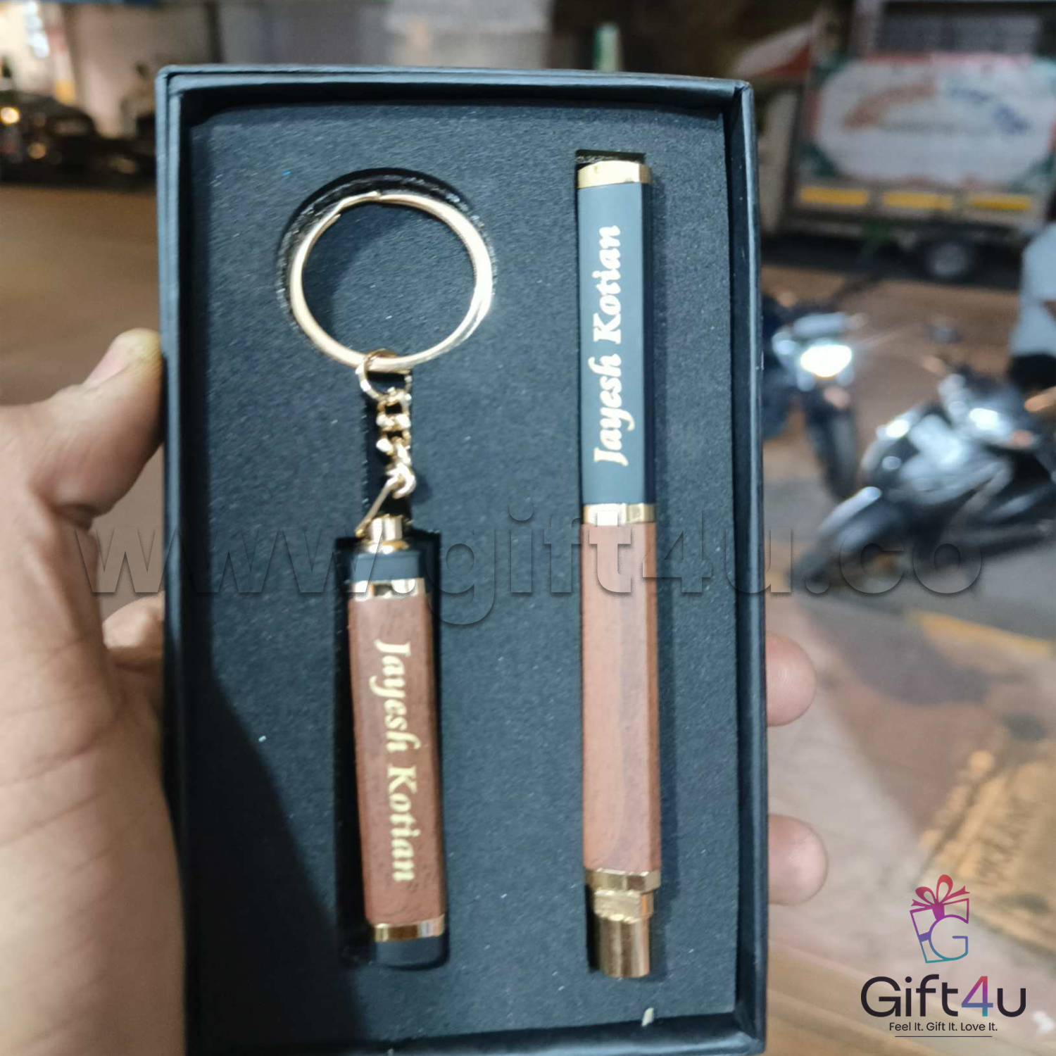 Crafted for those who appreciate timeless style, the WoodLuxe Classic Combo features a beautifully finished wooden pen and matching keychain engraved with your name in gold. A perfect fusion of tradition and elegance, ideal for everyday class or heartfelt gifting.