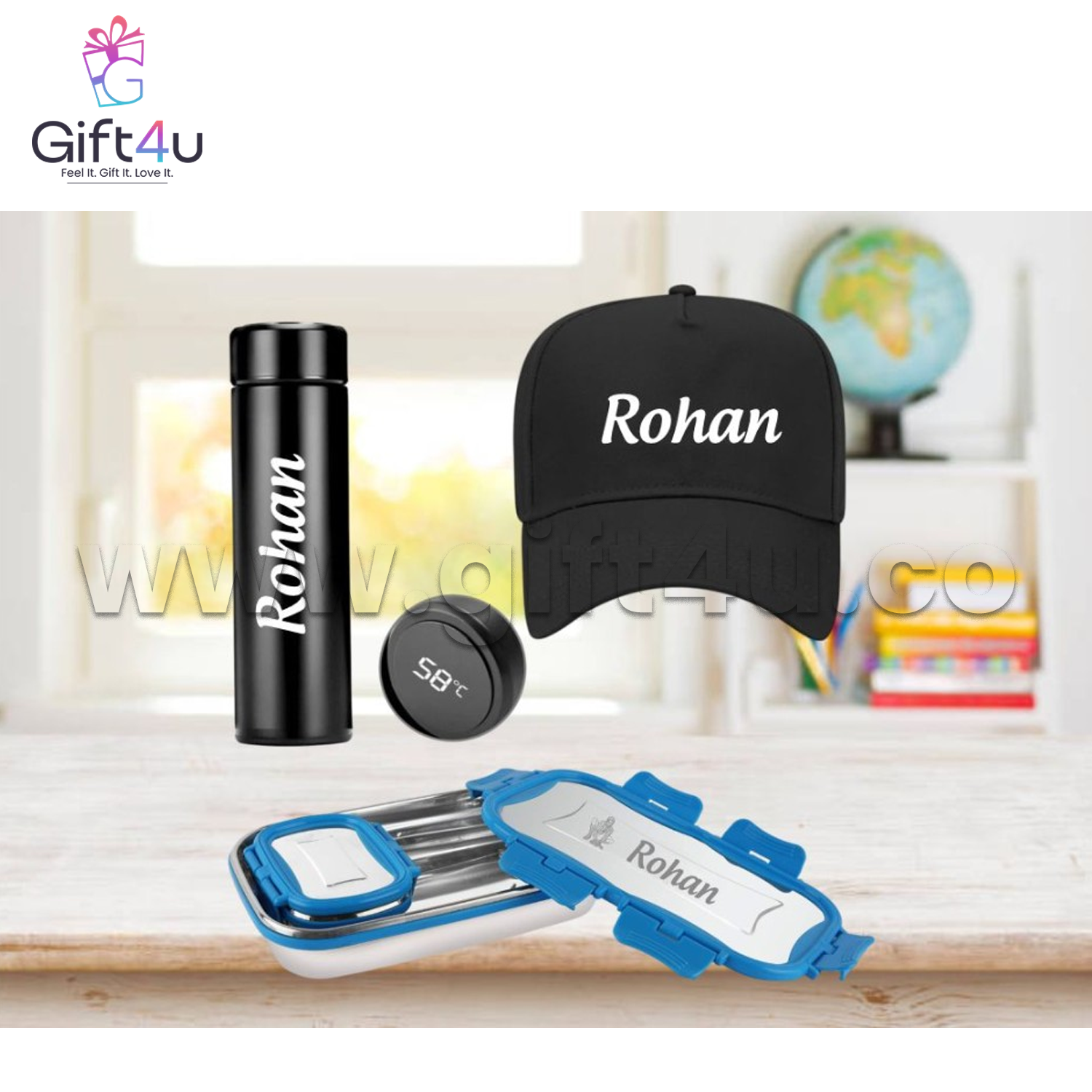 Each item is designed with your kid’s name and favorite cartoon character. Made from safe, durable materials, this combo is perfect for daily school use, gifting, or travel.