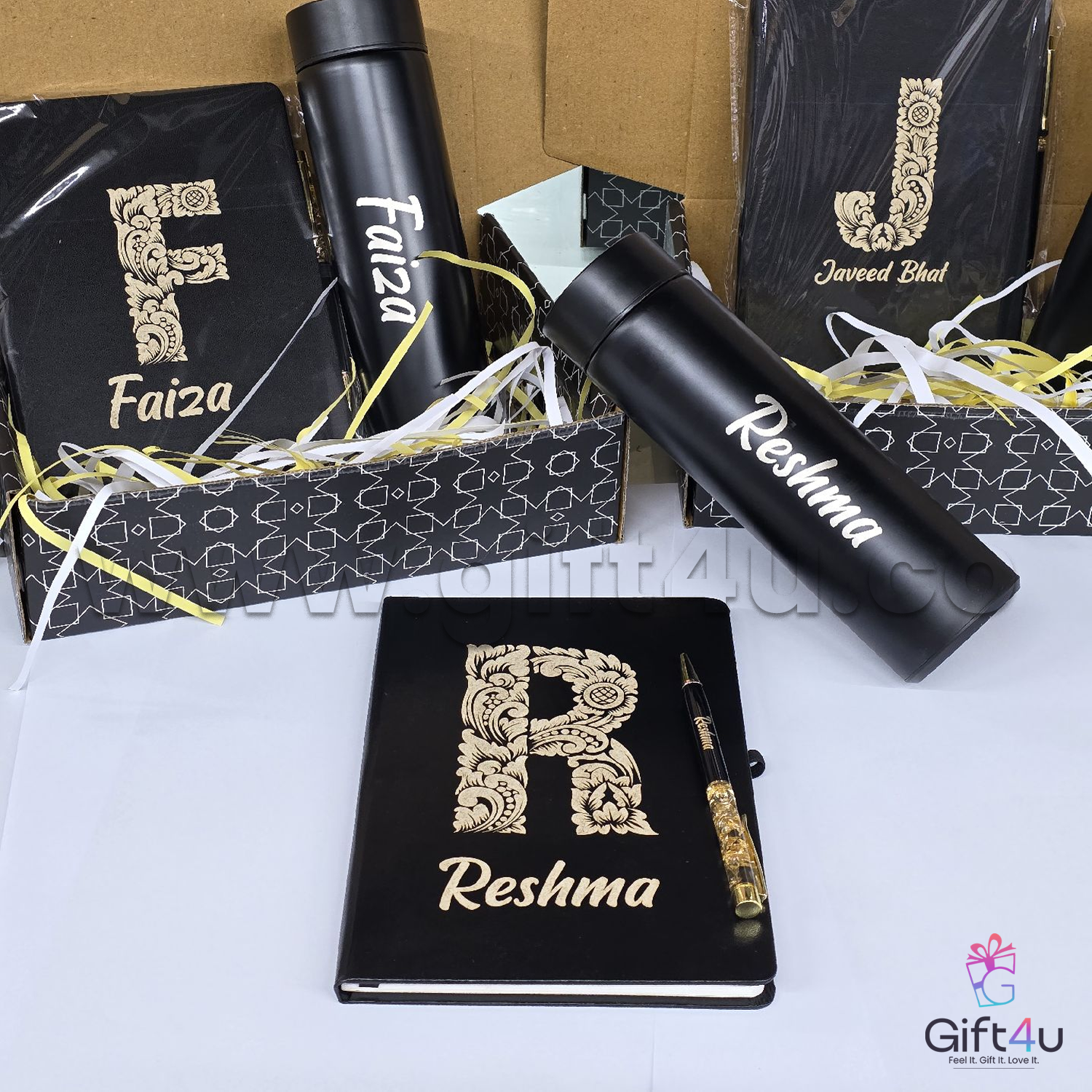 Make every gesture count with the Gaurav Signature Gold Set, a personalized trio that blends modern utility with artistic flair. This exclusive gift set includes: