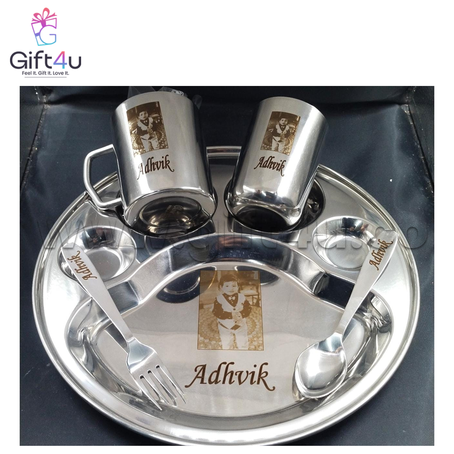 Complete Dining Set – Includes engraved plate, fork, spoon, mug, and tumbler